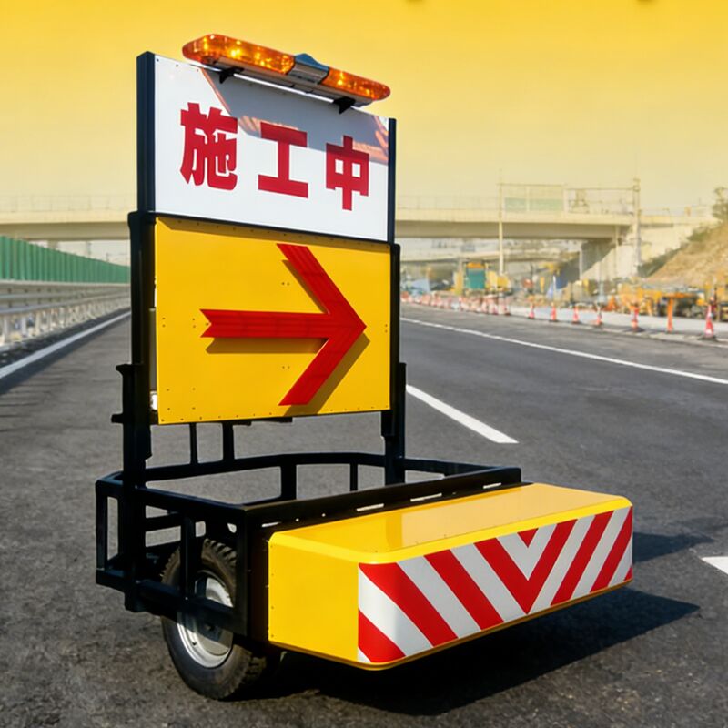 The device is equipped with an LED arrow board that can change the direction. Drivers can observe the device from a long distance to remind the drivers to slow down and change lanes.