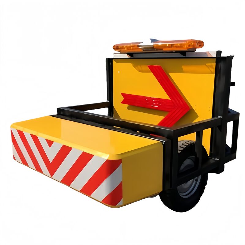 The aluminum portable vehicle rear-guard anti-collision truck mounted attenuator is primarily installed at the rear of road maintenance vehicles. Designed for temporary road safety maintenance and construction scenarios, it provides essential protection for personnel working in construction zones. Constructed from durable steel and aluminum materials with an overall weight of 129KG, this device offers exceptional stability. The panel height is manually adjustable for easy operation, and features prominent warning lights for enhanced visibility.